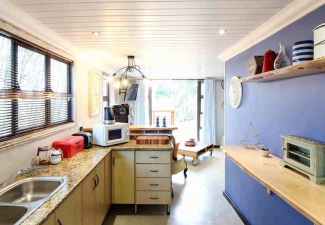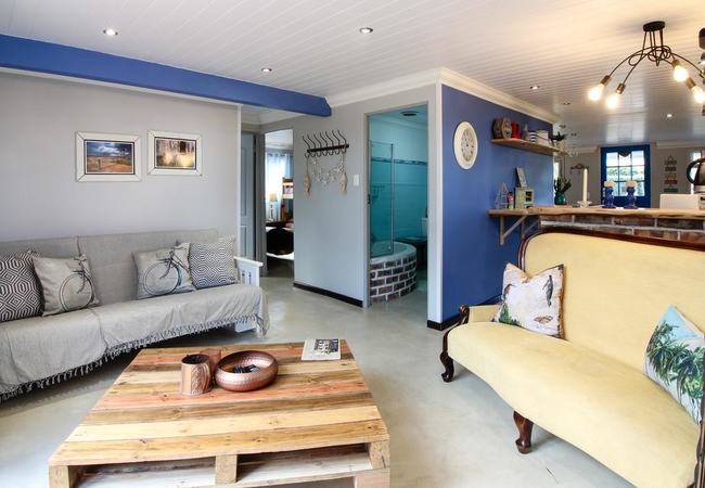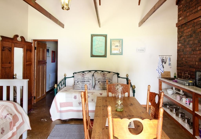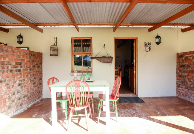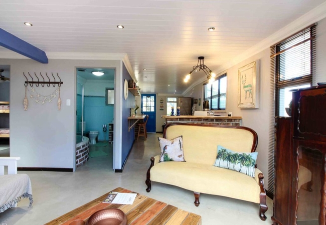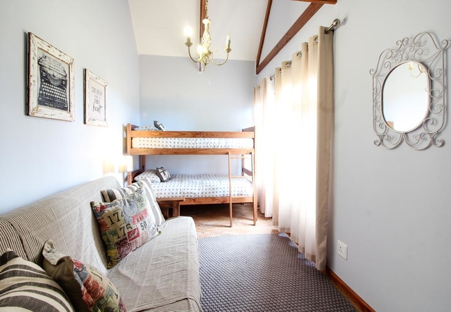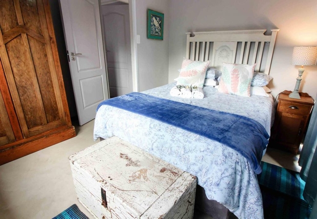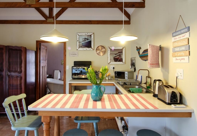The cottage has two bedrooms; one furnished with a double bed and one with a bunk bed. There is a full kitchen and a lounge with air conditioning . The bathroom has both a bath and shower. Braai facilities are provided on the patio.