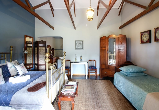 This room has a Queen-size bed and two single beds and makes use of a shared bathroom.