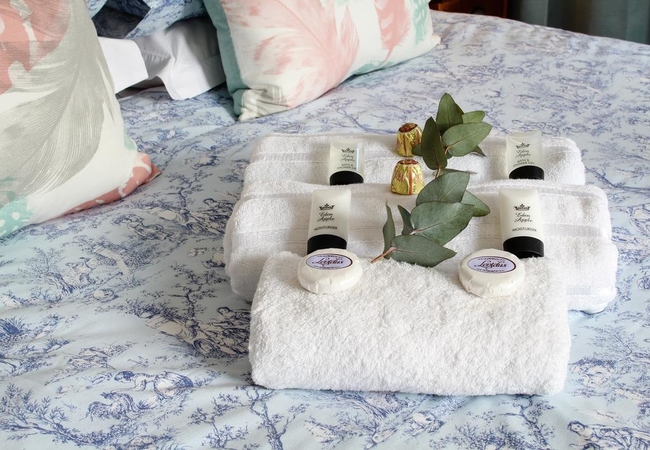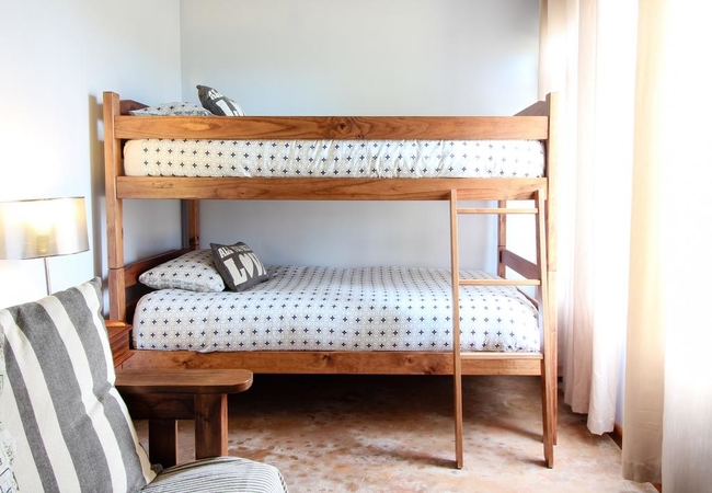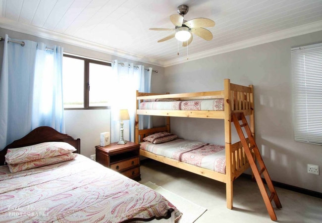 The rooms are furnished with a Queen-size bed and two single beds and they make use of a full en-suite bathroom. There is an open plan area with a fully equipped kitchen as well as a lounge. Braai facilities are provided on the patio.