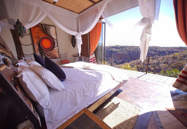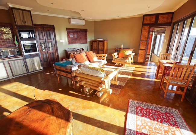 The Executive Suite consists of two bedrooms and two bathrooms. Open-plan kitchen. The living area opens onto a deck, which has a braai area and a solar-heated plunge pool. Oneness is a two-bedroom suite perfect for family or friends. An open-plan kitchen and braai facility and the gorge and valley views below ensure an unforgettable holiday. Facilities in this room include Air Conditioning Fan Internet Ready View Fully Equipped Bed Linen supplied Towels Microwave Oven.