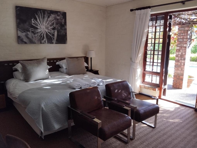 The rooms are overlooking the garden and pool area and have a view of the Constantiaberg Mountains. All rooms are equipped with tea and coffee trays, TV, safe, bar fridge, hairdryer, heated towel rail and hot and cold air-conditioning. Each room has a king-size bed which can be changed into two singles if requested. The bathrooms all have showers and two also have a bath.