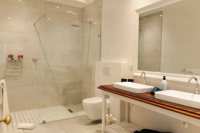 Our luxuriously appointed Superior King Suite 1 offers fantastic accommodations. You'll relax in an inviting king-size bed, a separate bathroom with shower, and decor in shades of beige and maroon. This suite will provide you with the comfort you need during your stay. In-room amenities during your stay: The suite offers a Nespresso machine with complimentary coffee pods, a small kettle for tea, complimentary bathroom care products from Africology (shampoo/conditioner/soap/body wash), a hairdryer, a small refrigerator with two complimentary bottles of water, individual air conditioning, and a 32inc TV with Netflix.