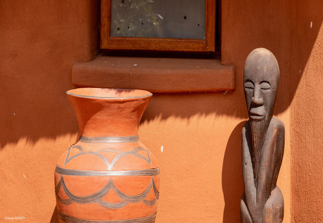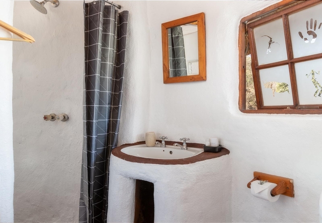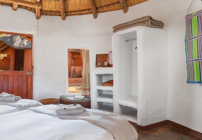 Mbeki is a standard room in the Venda Art Lodge. The bedroom is furnished with twin beds and has an en-suite bathroom with shower, basin and toilet. Guests share use of the dining room, lounge and deck with a swimming pool and outdoor fire pit.