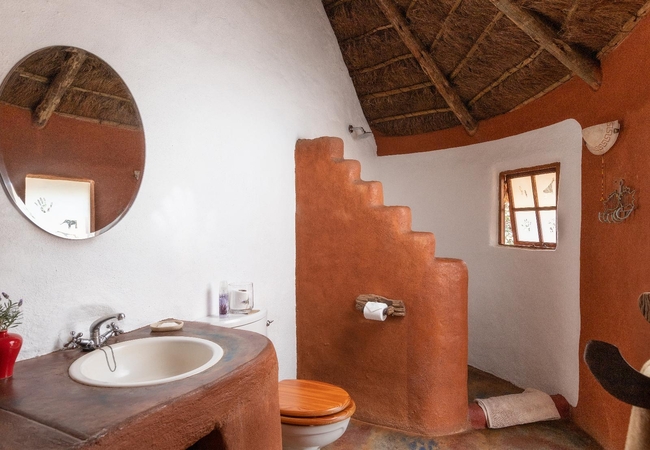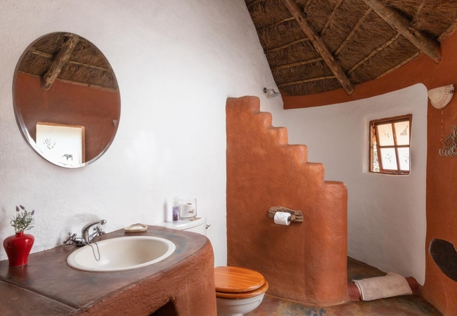 Hamasha Bush Camp requires a high clearance vehicle to access it. The bush camp sleeps six guests in two cottages. The first one is furnished with a King-size bed and has an en-suite bathroom fitted with a bath, shower, toilet basin and an outdoor shower. The second cottage has two rooms, one furnished with a Queen-size bed and the other with twin beds. Each room has an en-suite bathroom fitted with a shower, toilet, basin and outdoor shower. There is a separate open plan lounge, dining and kitchen area and a central outdoor braai and firepit.