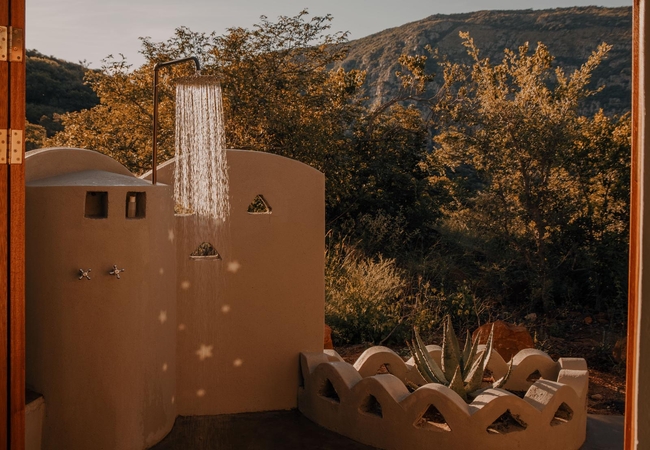A remote six-bed bush camp surrounded by trees and nestled within a spectacular amphitheatre of high cliffs and mountains. Hamasha is a dream escape from the rest of the world. Surrounded by trees and nestled within a spectacular amphitheatre of high cliffs and mountains with magnificent views, the camp overlooks Hamasha gorge.