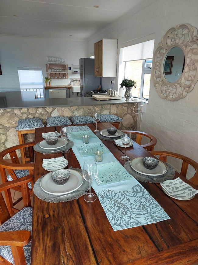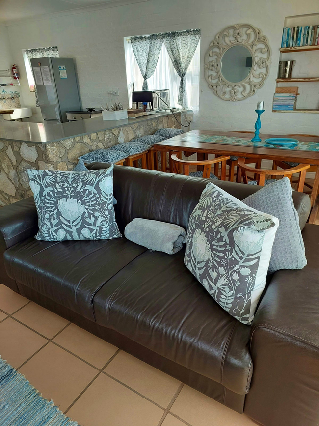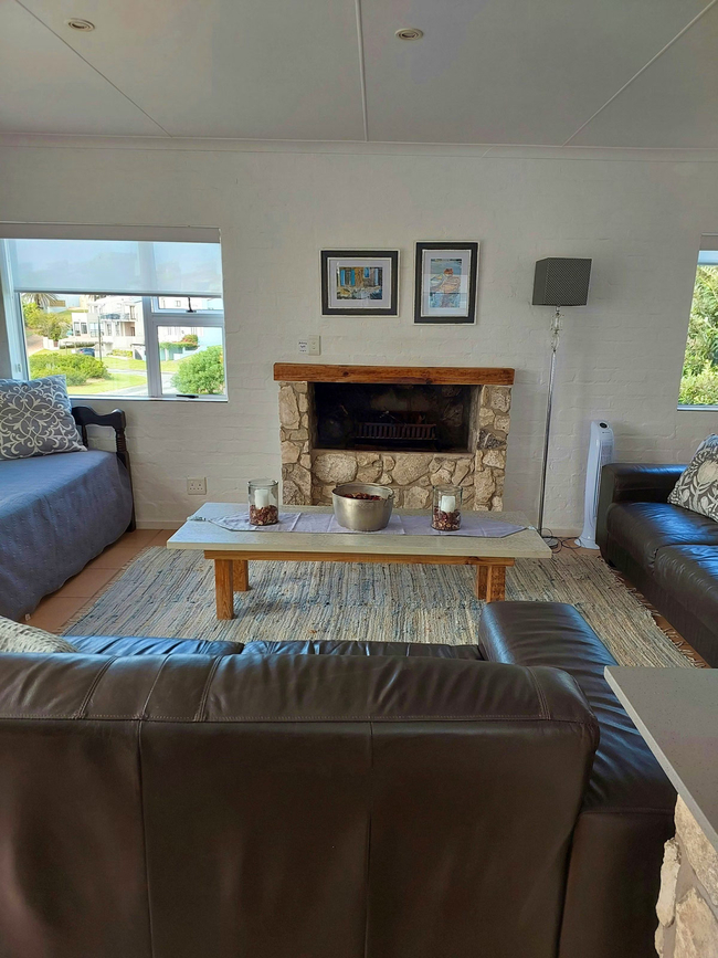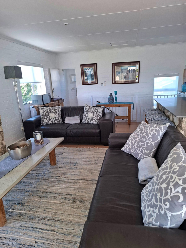 Pampoentjie @ Lieflappie provides stunning ocean views and a stylish, fully self-contained space in the picturesque Still Bay region. The unit comfortably accommodates up to four adults and one child, featuring two tastefully furnished bedrooms and a single bathroom. The first bedroom offers a double bed, while the second bedroom contains a king-size bed that can be separated into two single beds upon request. The bathroom is equipped with a shower, washbasin, and toilet. Additionally, a toddler bed is situated beneath the staircase, and a child-only bed is located in the living area for added convenience. The open-plan living area includes a fully equipped kitchen with a gas stove, electric oven, microwave, fridge-freezer, dishwasher, and all necessary cutlery and crockery, complemented by a breakfast bar with stools. Adjacent to the kitchen is a six-seater dining table, perfect for shared meals. The lounge area offers comfortable leather couches, a fireplace, and a television with DStv, while guests can also enjoy complimentary Wi-Fi throughout the property. Outside, a private patio provides an outdoor dining area, braai facilities, and panoramic sea views, ideal for relaxing or entertaining. Guests enjoy complete privacy, with no facilities shared between units. Each accommodation has a separate entrance and a dedicated braai area. The property is equipped with an inverter, solar panels, and gas geysers, ensuring uninterrupted comfort even during load-shedding periods.