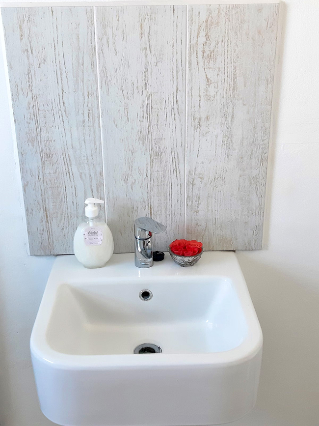The first bedroom offers a double bed, while the second bedroom contains a king-size bed that can be separated into two single beds upon request. The bathroom is equipped with a shower, washbasin, and toilet. Additionally, a toddler bed is situated beneath the staircase, and a child-only bed is located in the living area for added convenience.