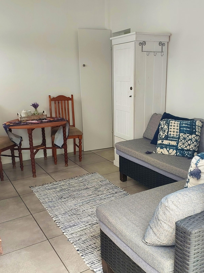 The unit comfortably accommodates two guests and consists of a well-appointed bedroom and a modern bathroom. The bedroom features a cozy double bed, while the bathroom is fitted with a shower, washbasin, and toilet. A compact kitchenette is available for preparing meals and includes a 2-plate stove, mini-oven, air fryer, toaster, microwave, fridge-freezer, and all necessary cutlery and crockery, as well as tea- and coffee-making facilities. The space also provides a seating area, a TV with DStv, and a table for two, making it ideal for relaxed dining or casual entertainment. Guests have access to free Wi-Fi throughout the unit. Guests benefit from complete privacy, as no facilities or amenities are shared with other visitors. Each unit has its own entrance and a private braai area. To ensure uninterrupted comfort, the accommodation is equipped with an inverter, solar panels, and gas geysers, making it resilient against load shedding interruptions.