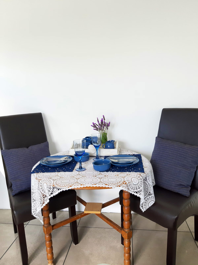 A compact kitchenette is available for preparing meals and includes a 2-plate stove, mini-oven, air fryer, toaster, microwave, fridge-freezer, and all necessary cutlery and crockery, as well as tea- and coffee-making facilities. The space also provides a seating area, a TV with DStv, and a table for two, making it ideal for relaxed dining or casual entertainment. Guests have access to free Wi-Fi throughout the unit.