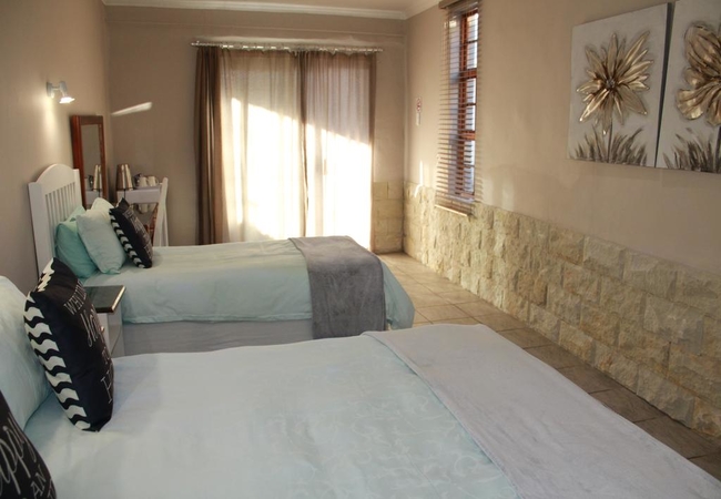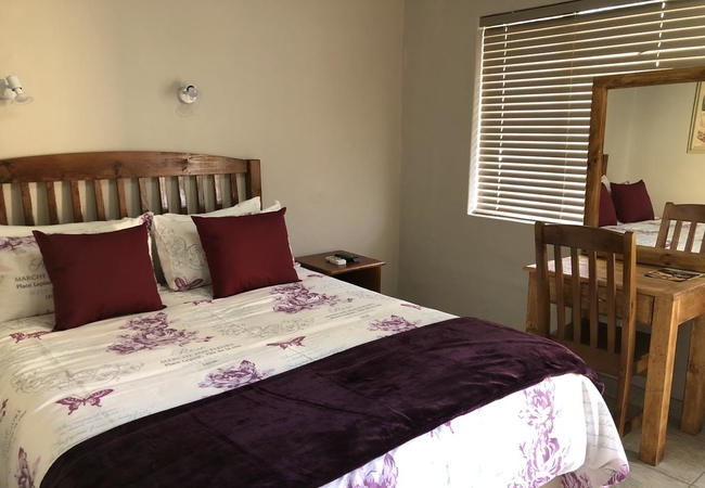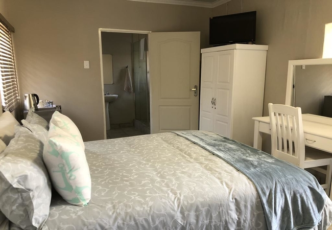 This room has a double bed and an en-suite bathroom with a shower, toilet and basin. The room has air conditioning, TV with DStv, desk, bar fridge and tea/coffee making facilities.