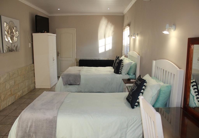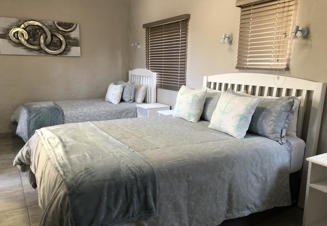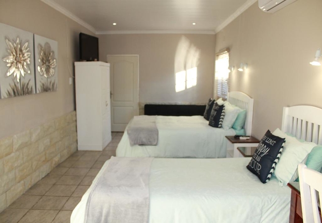 The Family Room each have a double bed and a single bed. There is an en-suite bathroom with a shower, toilet and basin. These rooms are air conditioned and have a TV with DStv, desk, bar fridge and tea / coffee making facilities.