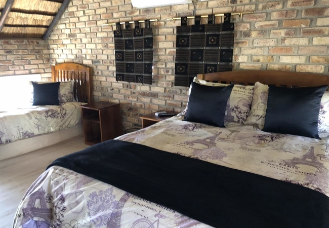 The family rooms each have a double bed and a single bed. There is an en-suite bathroom with a shower, toilet and basin. These rooms are air conditioned and have a TV with DStv, desk, bar fridge and tea/coffee making facilities.