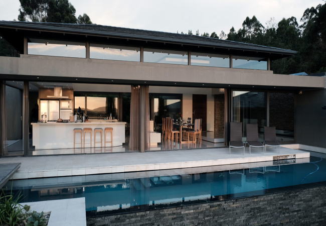 Ample parking for many vehicles on-site, including garage for 2 plus bikes. The pool is 17 m rim-flow swimming pool. DSTV full bouquet, 2 x flat screen TV's, ADSL internet, audio throughout the house controlled via wall iPads, external (covered) braai area, many terraces and private courtyards, outside entertaining spaces.