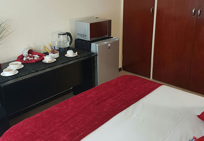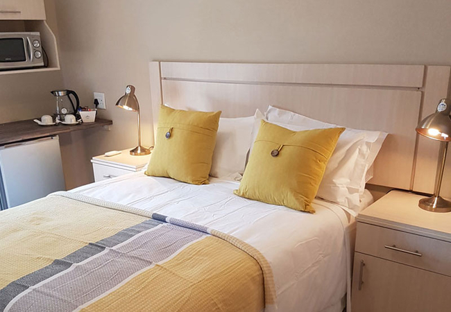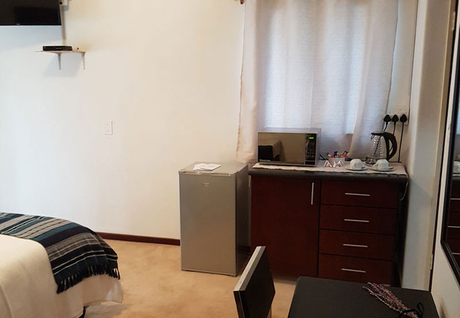 Both rooms are furnished with a double bed and have an en suite bathroom with a shower. Room facilities include DStv, a fridge, kettle and microwave.