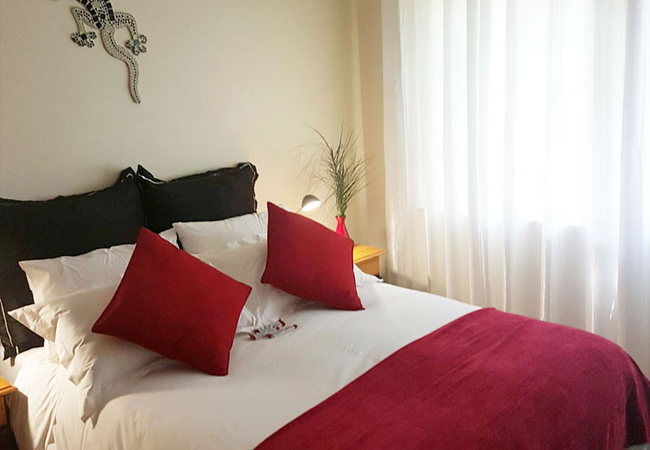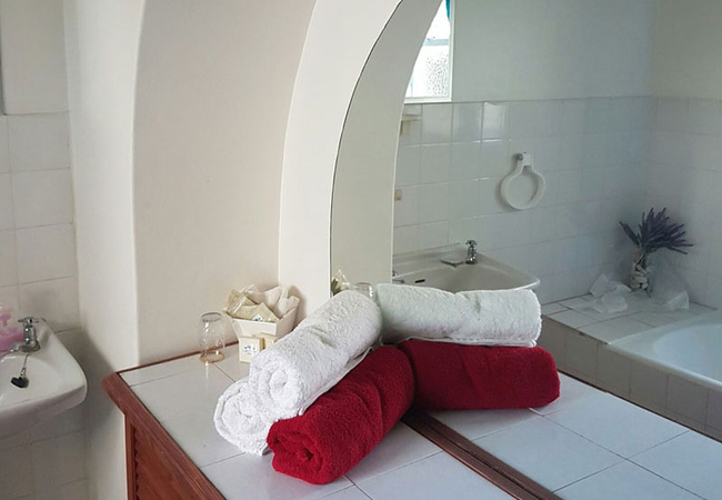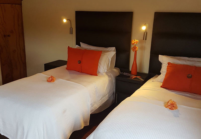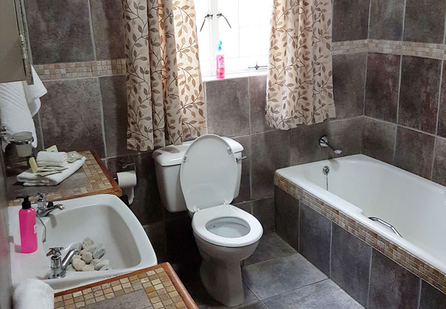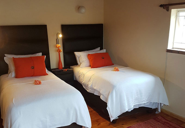 Twin beds, shares a bathroom with Lily Room. Room facilities include DStv, Air-conditioning, Kettle / Coffee / tea facilities, Hairdryer. Please note: Lily Room and Rose Room: These two rooms are offered together or separately and make use of a shared bathroom and a separate shared toilet. They work well as a family room or business room as they allow guests privacy but are also close together. They are both furnished with twin beds.