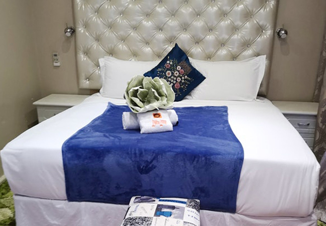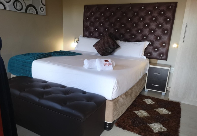 Our Superior Rooms offer spacious, stylish accommodation ideal for business travellers and those with a taste for added comfort. Each room features a private bedroom with a king-sized bed and a modern en-suite bathroom, which may include either a shower or a separate bath and shower combination. Thoughtfully designed for both convenience and relaxation, these rooms are equipped with all the essentials for a luxurious stay. Guests can enjoy complimentary Wi-Fi, a flat-screen TV with DStv or satellite channels, and a dedicated workspace with a desk and telephone. Additional features include air conditioning, a safe, and a daily cleaning service to ensure a fresh and welcoming environment. For added comfort, rooms include coffee and tea-making facilities, a bar fridge, microwave, refrigerator, hairdryer, iron, and ironing board. All Superior Rooms are non-smoking and include premium bathroom amenities.