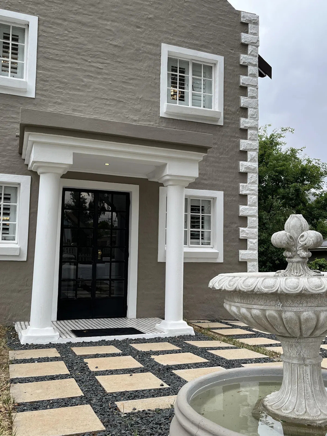 This is evident in the beautifully decorated bedroom with luxurious pristine white Percale linen, feather duvet and mohair blankets on an antique bed. The clean monotone palette interior contrasts warmly with the wooden floors which are draped in several Persian carpets while original art works grace the walls.