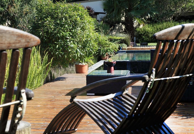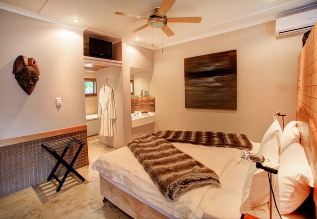 Air-Conditioned spacious(54m2) and private Garden Suites in "Afro-Zen" style with forest and pond views. Large sliding door opens onto private terrace. Extra length King-Size beds. Bathroom with bath, shower and courtyard with outdoor shower. WiFi. TV.