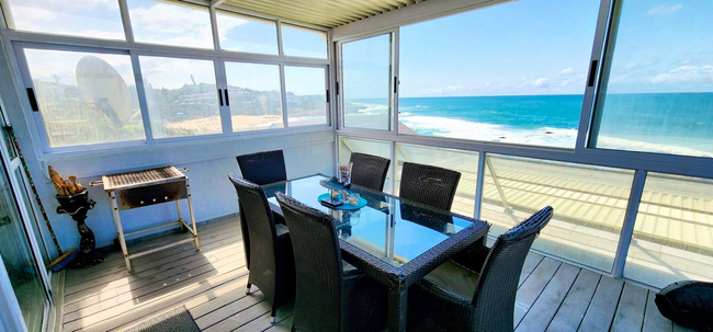Linden Terrace 5 is a secure three bedroom, two bathroom apartment with sweeping 180 degree views of the ocean, positioned approximately 80 metres from the Ramsgate Tidal Pool and about 100 metres from the main swimming beach. The apartment is located on the fourth floor of a well maintained terraced complex, with approximately twelve steps leading up from the garage entrance area. The main bedroom is furnished with a queen-size bed and is complemented by a modern en-suite bathroom fitted with a shower, toilet and basin. The second bedroom also features a queen-size bed, while the third bedroom is equipped with a bunk bed comprising a double bed below and a single bed above. These two bedrooms share a modern bathroom, which includes a shower, toilet and basin. All three bedrooms are fitted with air conditioning units operated on a convenient pay-as-you-go system for added comfort. Both the main bedroom and the third bedroom are equipped with flat screen televisions connected to the DSTV system in the lounge. The open plan, modern kitchen is finished with granite countertops and is fully equipped with a microwave, fridge with built-in ice maker and water dispenser, washing machine and tumble dryer, as well as a breakfast nook with seating for six. The lounge is comfortably furnished and includes seating for six guests, a flat screen television, DSTV decoder and a hi-fi system for entertainment. Leading from the lounge, the enclosed balcony offers patio furniture with seating for six, along with a portable braai, creating an inviting space for relaxed indoor-outdoor living. Bed linen and bath towels are provided, guests are kindly requested to bring their own swimming towels. The apartment includes a lock-up garage and additional secure parking within a fully walled and gated courtyard. The unit is pet friendly by prior arrangement, with permission granted for small dogs only.