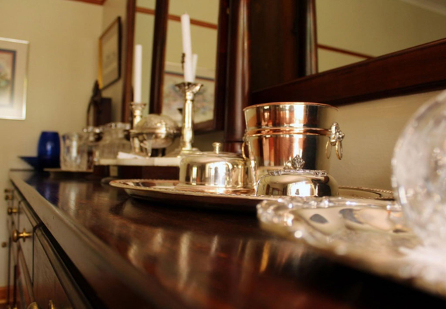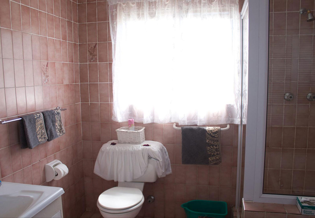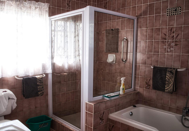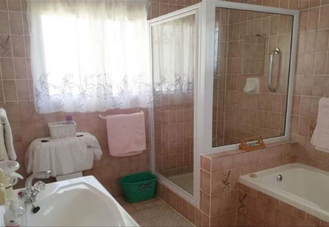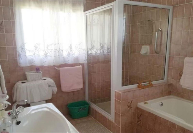 Room 8 is furnished with a double bed. The en-suite bathroom is fitted with a bath, shower, toilet and basin. Each individually decorated room contains a bar fridge, tea/coffee with complimentary rusks, TV with an OpenView decoder, Wi-Fi, as well as a heater and a portable or ceiling fan.