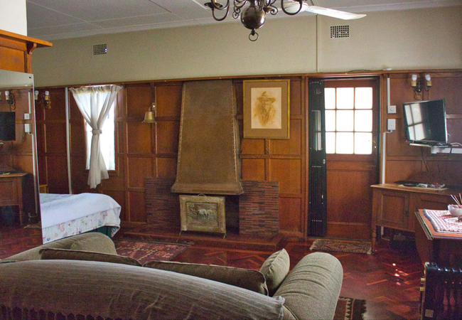 Green Room is a family-friendly room furnished with a double bed and a fold-out sleeper couch for a child or third adult. The room has an en-suite bathroom fitted with a shower, toilet and basin. Each individually decorated room contains a bar fridge, tea/coffee with complimentary rusks, TV with an OpenView decoder, Wi-Fi, as well as a heater and a portable or ceiling fan.