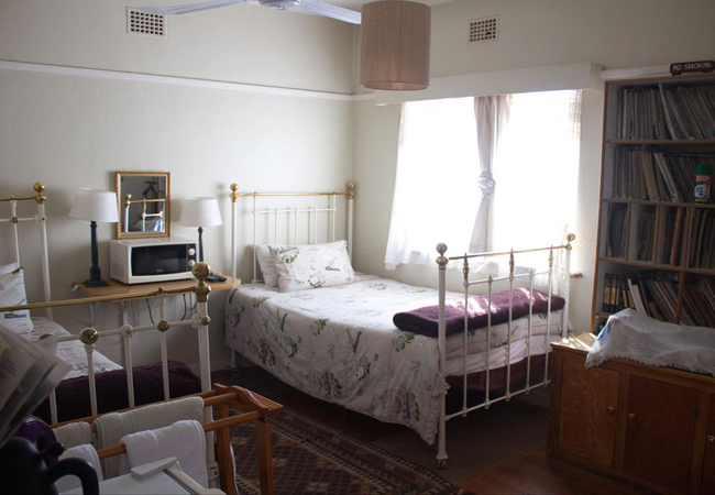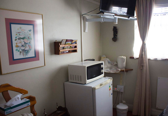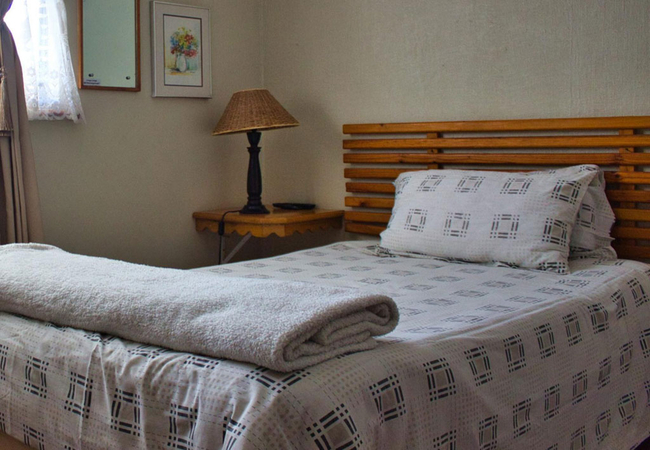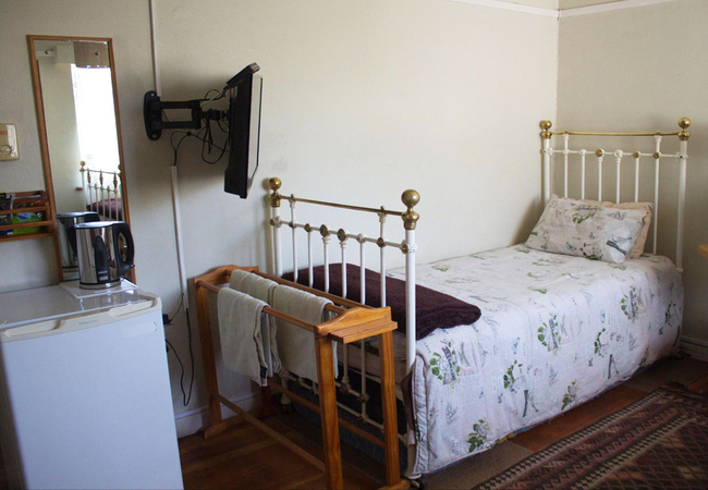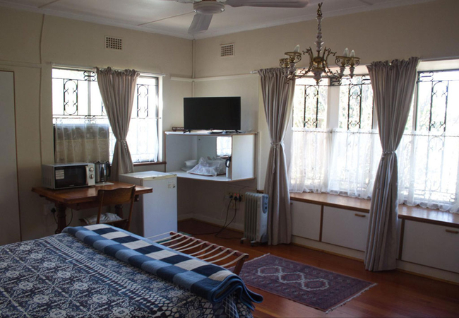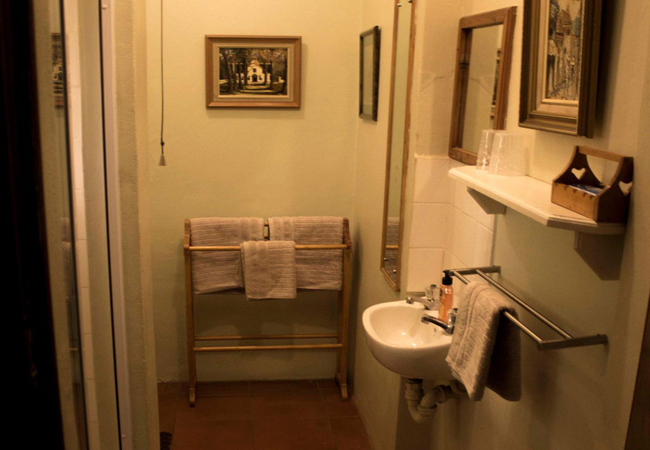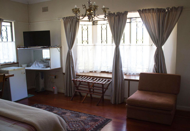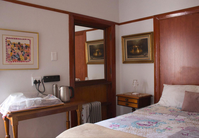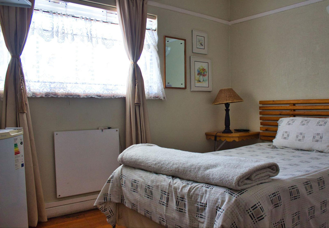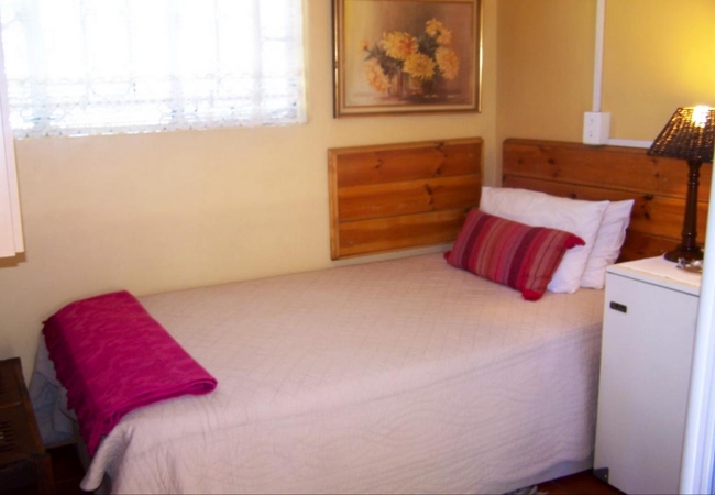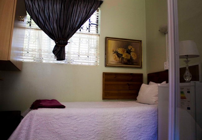 Yellow Room 5 is furnished with a single bed. The room has access to a shared bathroom fitted with a shower, toilet and basin. Each individually decorated room contains a bar fridge, tea/coffee with complimentary rusks, TV with an OpenView decoder, Wi-Fi, as well as a heater and a portable or ceiling fan.