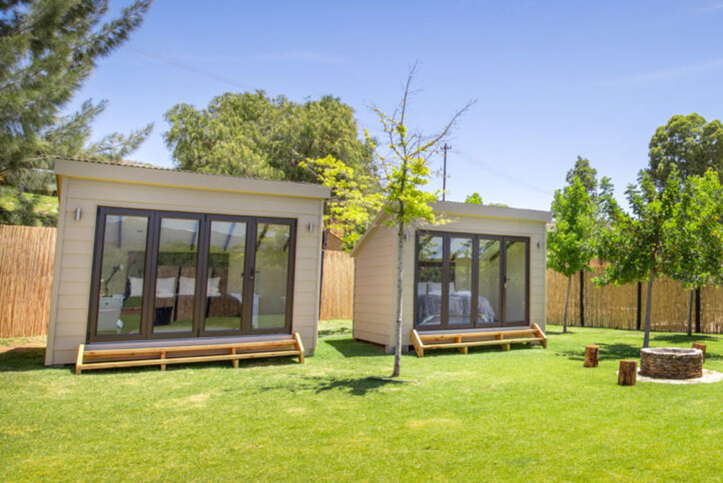 Little Eden Pixie offers two hand-made container bedrooms each furnished with a Queen-size bed. The communal luxury ablution is fitted with showers, basins and toilets.