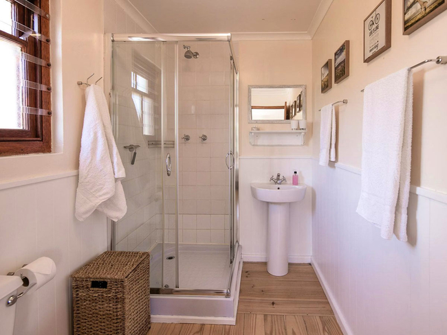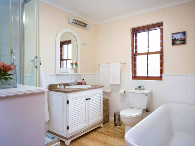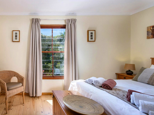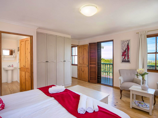 The three bedrooms are situated on the upper floor of the house and offer unique views, king- and queen size beds, cotton linen and ample built-in cupboards.There is also a room with a double sleeper couch, suitable for one adult, or an adult and a child.