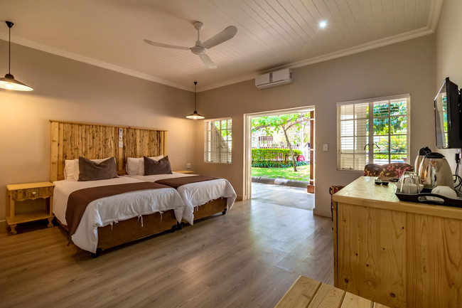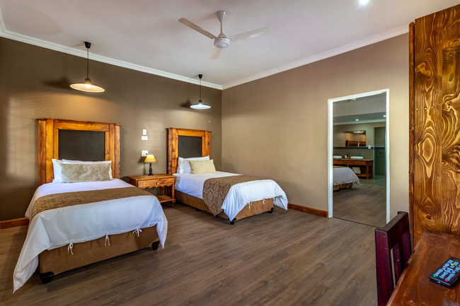 The Luxury Family Suite contains 2 double beds and an en-suite bathroom fitted with a shower. All rooms are equipped with ‘no noise’ fridges, air-conditioning, free Wi-Fi and a TV with selected DStv channels.
