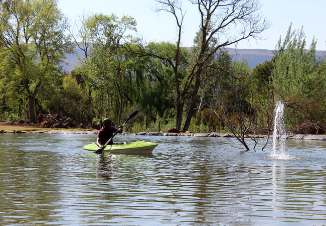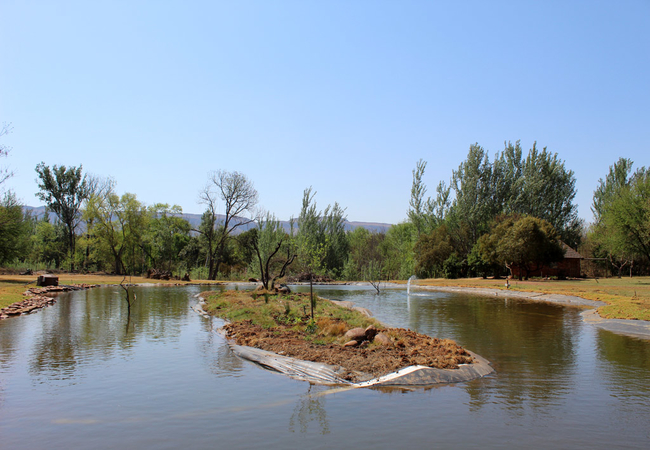 There are eight Little Swift Chalets, each with an open plan design accommodating two adults in a Queen-size bed. Each chalet is between 30m-50m apart, overlooking the river and offering complete privacy providing an ideal venue for a break-away weekend with your significant other. The chalet has a corner bath which overlooks the river yet is totally private from any angle. They also have a bathroom with a shower. There is an inside fireplace, kitchenette and an outside private patio braai. The chalets are equipped with a fridge, double hot plate stove, microwave, linen, cutlery and crockery. The river, swimming pool and the whirl pool are unfenced so children must be supervised at all times. In the centre of the horseshoe, slightly elevated is the communal Lapa which has a whirl pool, an infinity swimming pool, a grassy area ideal for a braai and then the inside braai and serving counter, ideal for chilly winters.