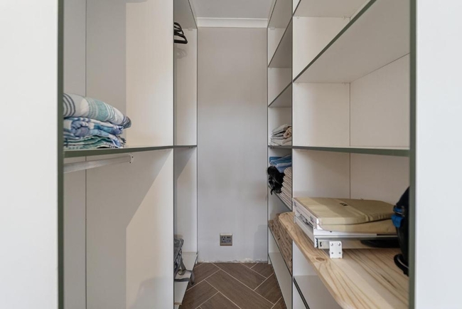 The private bedroom offers a restful retreat, furnished with a king-size bed to ensure a high level of comfort. An en-suite bathroom is fitted with a walk-in shower, washbasin, and toilet, providing all the essentials for a refreshing start or end to the day.