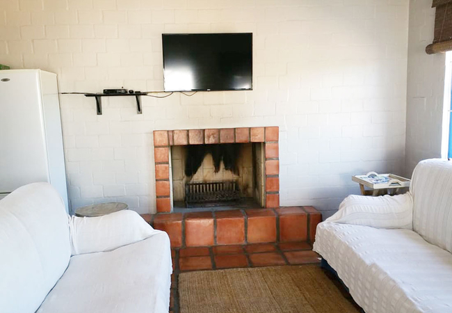 Shekina can accommodate up to 6 guests and comprises 3 bedrooms, 2 bathrooms, a kitchen and dining area, and a separate lounge with an inside fireplace and a TV. The first bedroom contains a double bed and the second and third bedroom has 2 single beds.