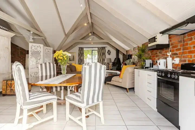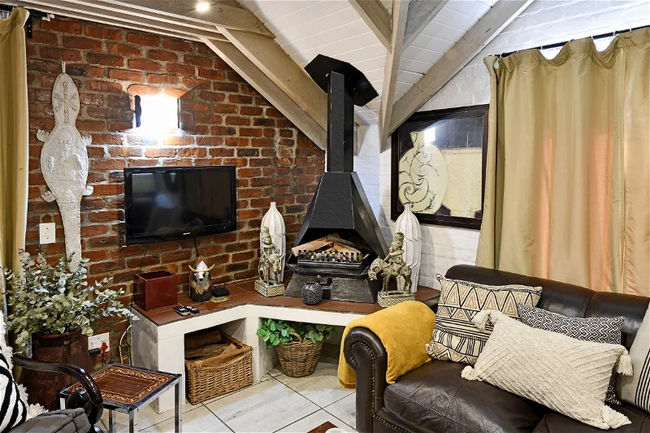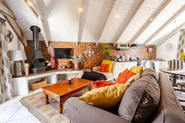 This spacious and refined penthouse is ideal for couples seeking a luxurious retreat. It features an open-plan design that includes a comfortable double bed, a fully equipped kitchen, a cozy dining area, and a lounge complete with a fireplace and air conditioning. Two balconies offer charming views over The Yard, providing the perfect setting to relax and unwind. The en-suite bathroom is fitted with a modern shower for your convenience. The penthouse offers a range of amenities to ensure a comfortable stay, including complimentary Wi-Fi, a TV, and a dedicated sitting area. Air conditioning and ceiling fans maintain a pleasant temperature, while a fireplace adds a touch of warmth and ambiance. For added security, a safe is provided. The bathroom is equipped with essential amenities, including a hairdryer, an iron and ironing board, a bathrobe, and exclusive toiletries. Guests can enjoy coffee and tea facilities, along with the convenience of a refrigerator, microwave, toaster, oven, and full kitchen setup. The balcony is furnished with outdoor seating, making it the perfect spot to enjoy the surrounding mountain views.