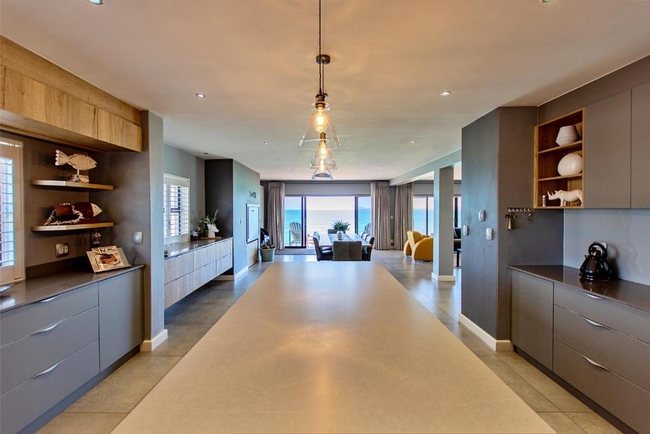 Designed with attention to detail, the property offers open and inviting living spaces complemented by refined finishes. Guests can unwind in the spacious lounge, enjoy a friendly game of pool, or make use of the braai area that opens directly onto the beach. The alarm system provides additional security.