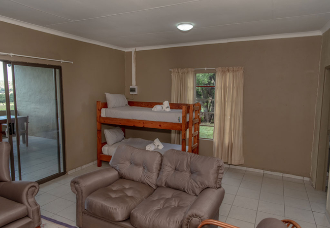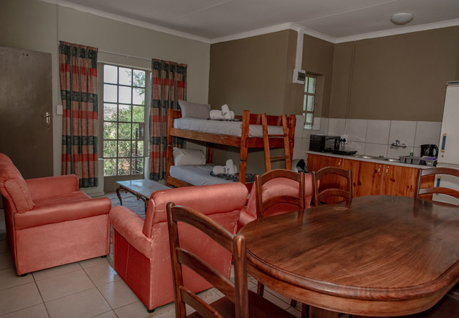 Consists of five self-catering units, which are mostly used by families. Sleeping six, each chalet has two en-suite bedrooms. A lapa, bar and kitchen provides space enough for families or a group of friends. Each unit has a coffee station, a fridge, kettle, hot plate and microwave.