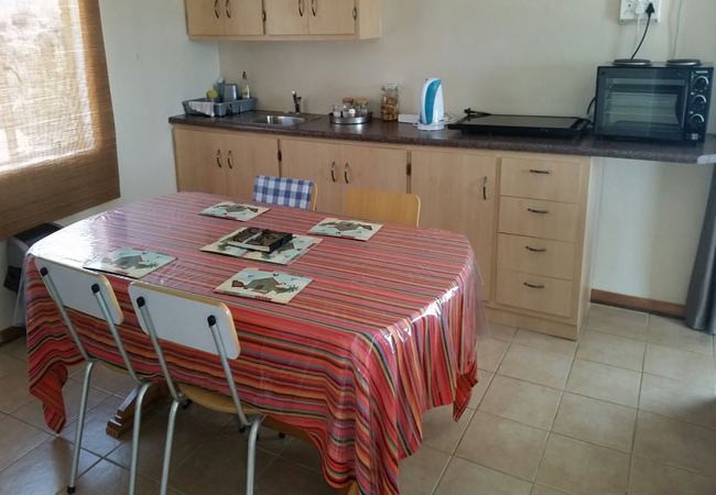 All meals are served in the privacy of your cottage. Dinner consists of Karoo lamb, vegetables, rice, roasted potatoes and desert. A cooked breakfast is served. Coffee, tea, juice and rusks for your use are in both cottages.