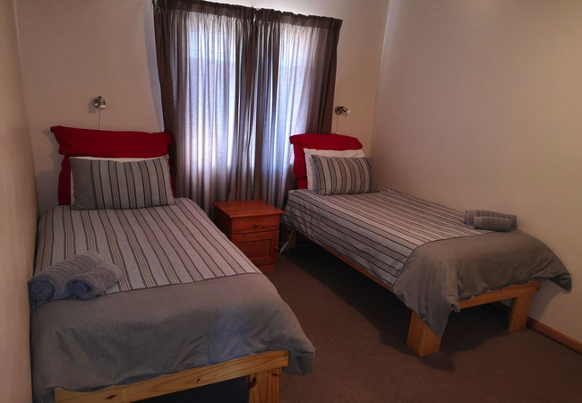Sleeping seven guests each these cottages offer the following. Two bedrooms: one with a Double bed and the other with two single beds. Open plan kitchen (fully-equipped) and lounge. Air conditioner in lounge / kitchen area. TV with SABC channels. Single bed as well as a sleeper couch in the lounge. Bathroom with a shower, toilet and wash basin. Braai facilities (barbeque facilities). Beautiful view that's ideal for star gazing. Heater and electric blankets during winter. Fans during summer. Housekeeping.