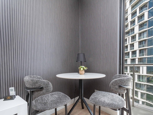 This one bedroom apartment offers a queen size bed, air conditioning, and a private balcony. The living space includes a full kitchen, dining area, and sitting area, along with a washing machine, Wi-Fi, and television with satellite and streaming services. The bathroom is fitted with a shower, and daily cleaning is provided at no extra cost for added convenience.