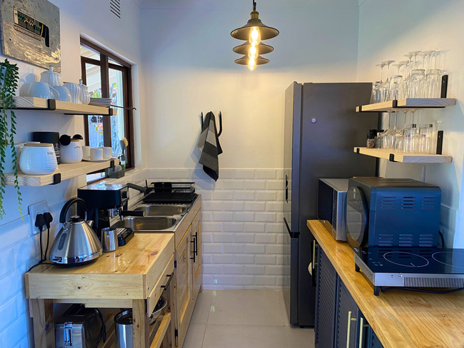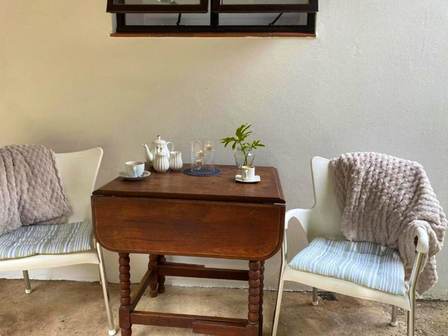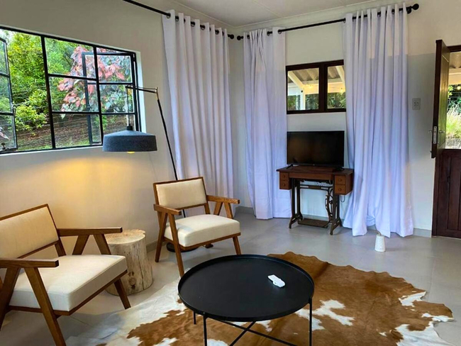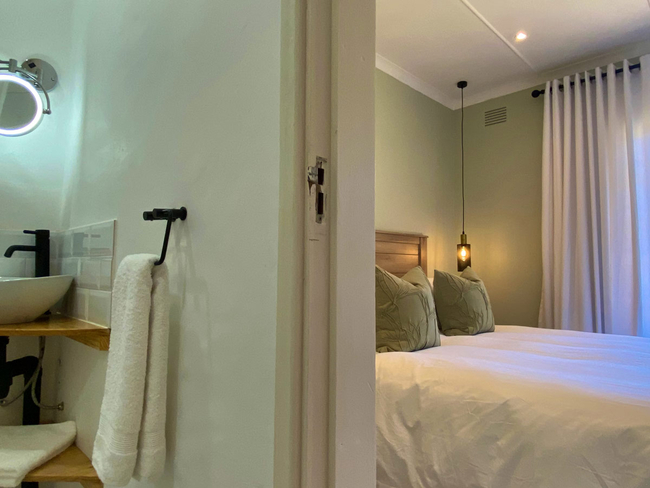 The cottage features one bedroom and one bathroom and can accommodate up to four guests. The bedroom is furnished with a queen-size bed and includes an en-suite bathroom fitted with a modern shower. A queen-size sleeper couch in the living area provides additional sleeping space for two guests. The open-plan interior includes a comfortable lounge with a Smart TV, a cozy reading nook with a handpicked selection of books, and a fully equipped kitchen complete with a fridge-freezer, two-plate induction stove, microwave, air fryer, toaster, and coffee machine. Guests can step onto the private patio to enjoy outdoor dining and relaxed seating, surrounded by tranquil garden views. The property also offers braai facilities, complimentary Wi-Fi, and secure on-site parking.