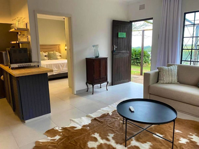 Luxury Modern Farm Cottage With Sea View offers elegant self-catering accommodation on a peaceful farm along the South Coast of KwaZulu-Natal, just a short drive from Trafalgar Beach and Southbroom. Surrounded by rolling macadamia orchards, this stylish retreat blends contemporary comfort with timeless country charm and sweeping coastal vistas.