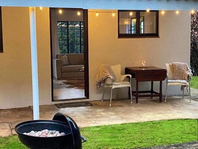 Guests can step onto the private patio to enjoy outdoor dining and relaxed seating, surrounded by tranquil garden views. The property also offers braai facilities, complimentary Wi-Fi, and secure on-site parking.