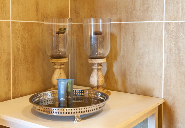 The second bedroom is furnished with two single beds and an en-suite bathroom fitted with a shower, toilet and basin. There is a separate guest toilet fitted with a toilet and basin.