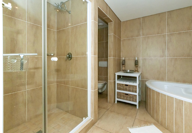 Luxury Ocean View 1203 is a self catering holiday apartment in Strand sleeping four guests. The main bedroom is furnished with a Queen-size bed and an en-suite bathroom fitted with a bath, shower, toilet and basin. The second bedroom is furnished with two single beds and an en-suite bathroom fitted with a shower, toilet and basin. There is a separate guest toilet fitted with a toilet and basin. The open plan living area consists of comfortable lounge with TV and Wi-Fi. There is a dining table where you can enjoy your meals and a fully equipped kitchen containing everything required for your stay including a dishwasher and washing machine. Outside there is a patio with furniture and lovely views.