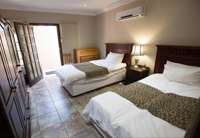 The Twin Room is furnished with a two single beds and an en-suite bathroom fitted with a shower, toilet and basin. Each room has a TV with DStv / satellite channels, internet and tea / coffee making facilities.