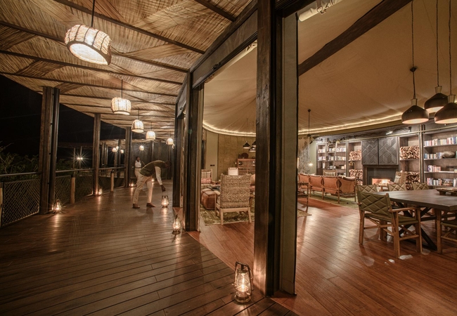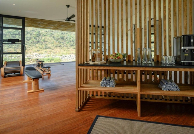The lodge has a dining area, bar, swimming pool. The lodge restaurant showcases an innovative rooftop vegetable garden, ensuring a direct supply of organic produce and delivering a farm-to-table dining experience that is both delightful and exceptional. The gym offers state-of-the-art facilities with panoramic river views, including treadmills, spin bikes, and an indoor water rowing machine. Yoga mats are also provided, allowing guests to engage in peaceful meditation and gentle stretching exercises with riverside views.