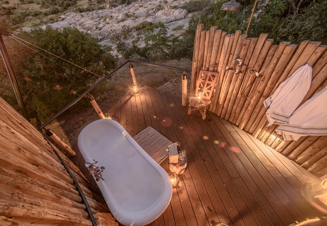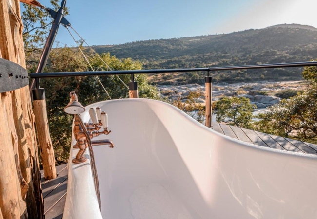 Madwaleni River Lodge offers twelve luxury tented suites that accommodate two people each. Furnished with twin beds that can convert to King-size beds or King-size beds with mosquito nets, each unit has an en-suite bathroom fitted with a shower, toilet and his and hers basins. Family suites with interleading sections are available for larger bookings or families. Comfortably furnished, each unit has a lounge area, a drinks and coffee station, opening onto a patio with outdoor sun loungers and a plunge pool overlooking the beautiful surroundings.