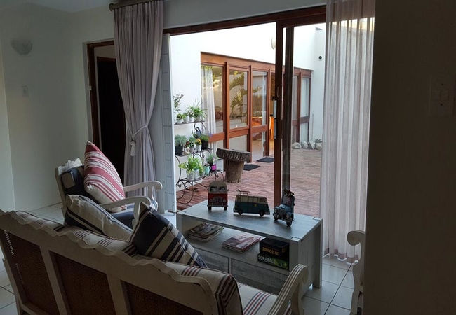 The living area opens onto a patio with braai facilities and wonderful views. MaFaRi Beach House has a spacious garden with a swimming pool and a large wooden table under shady trees.