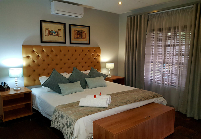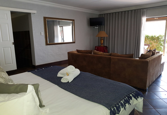 This room has a King-size bed and en-suite bathroom with bath. All the rooms are equipped with a TV with DStv / satellite channels, air conditioning , free Wi-Fi and a coffee / tea station.
