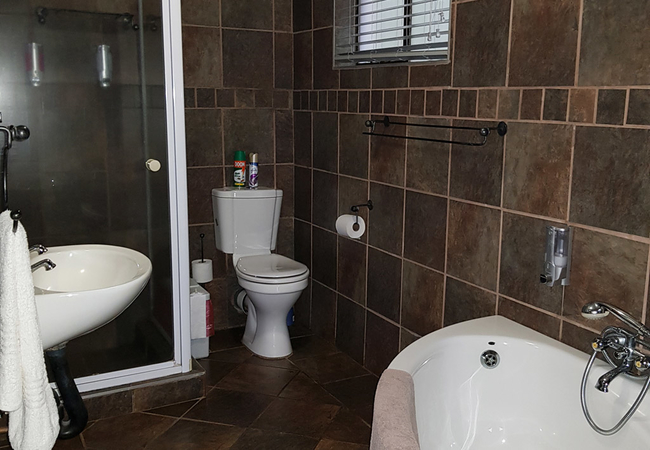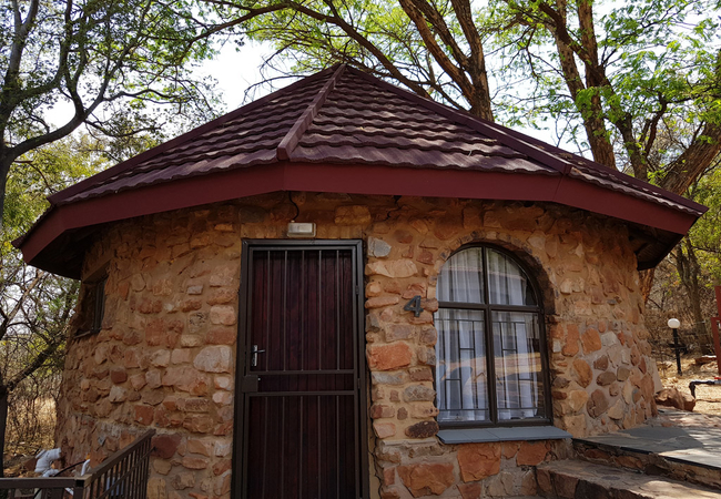 This rondavel has a King-size bed and en-suite bathroom with a shower. All the rooms are equipped with a TV with DStv / satellite channels, air conditioning , free Wi-Fi and a coffee / tea station.
