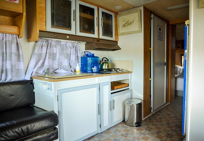 There is a semi equipped kitchenette with a microwave, a fridge and a stove. The boat is moored next to our premises which is close to the highway so there could be some noise but mostly it's quiet.